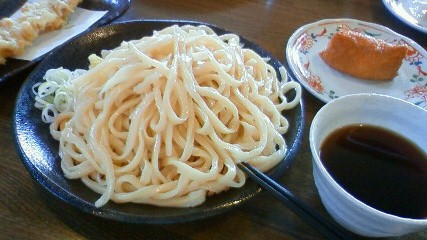 娘は冷たい麺にあたたかい肉汁うどん(半熟卵天麩羅つき)、私はもりうどんの大盛にいなり寿司とちくわ天が付いたランチ。 時間が時間だけに店内は私たちだけ・・・と思ったら常連らしい中年のご夫婦が入店。 思わず娘と顔を見合わせる。 あたたかいつけ汁は少し甘めで私の冷たいのは辛めに出来てて、コレが茄子ならどんなに美味しいか! あ、店内はモノトーンでスタイリッシュ。 |
